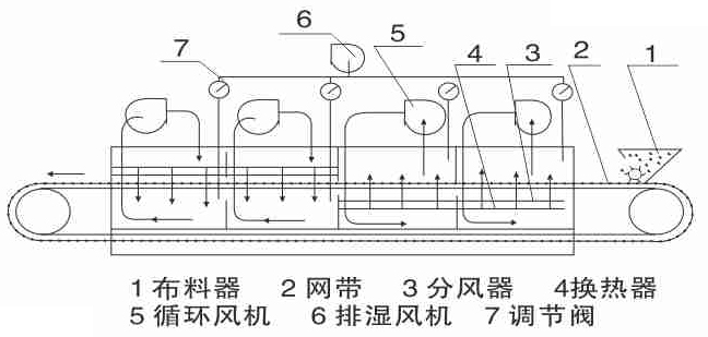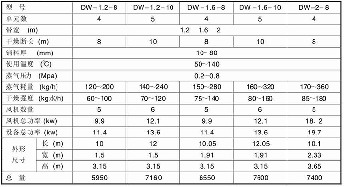 DW型系列带式干燥机是成批生产用的连续式干燥设备,用于透气性较好的片状、条状、颗粒状物料的干燥,对